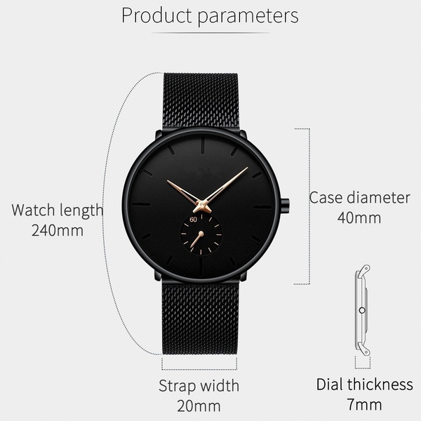 Ширина на лентата: 20 мм Дебелина на корпуса: 7 мм Дължина на лентата: 24 см Диаметър: 40 мм Тип материал: неръждаема стомана Тип: Закопчалка , Движение: Кварцов: